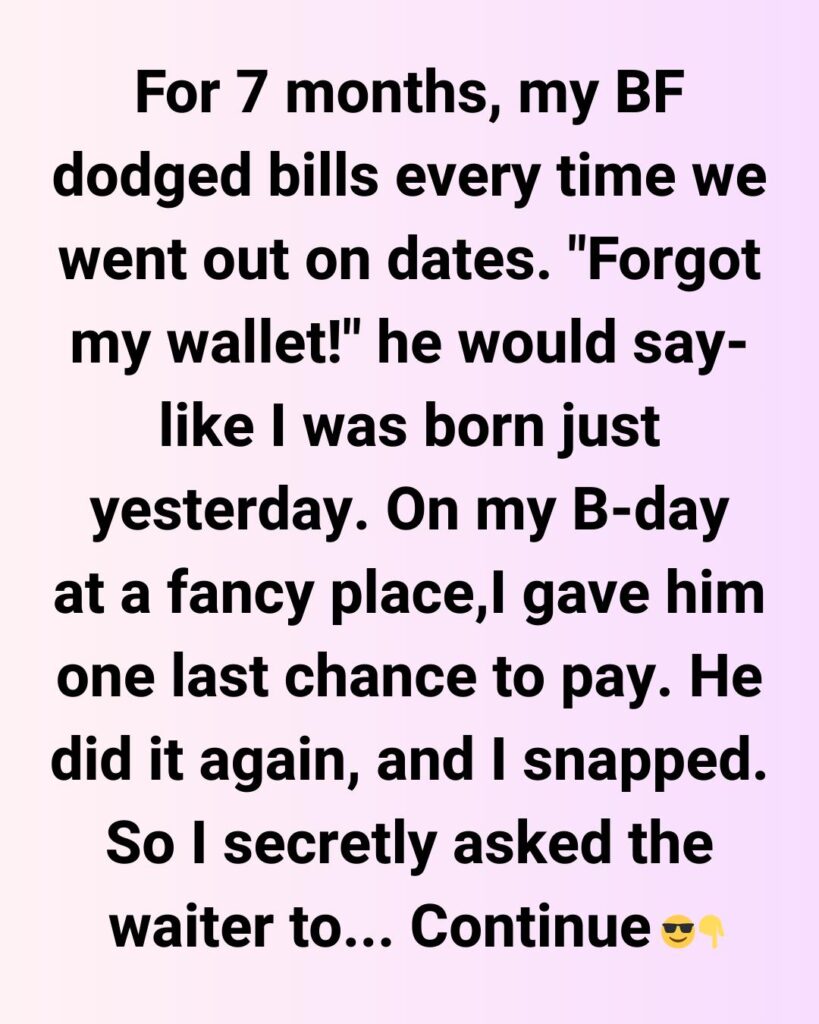 I’m still reeling from what happened last night with my boyfriend, Will. For the past seven months, he’s had this pattern of never paying when we go out. Every single time, it’s some excuse — “card declined,” “forgot my wallet,” “just paid a huge bill, can you cover it?” Always followed by, “Next one’s on me, promise!” But that “next one” never came. I’ve been covering everything, and honestly, it feels so disrespectful.
