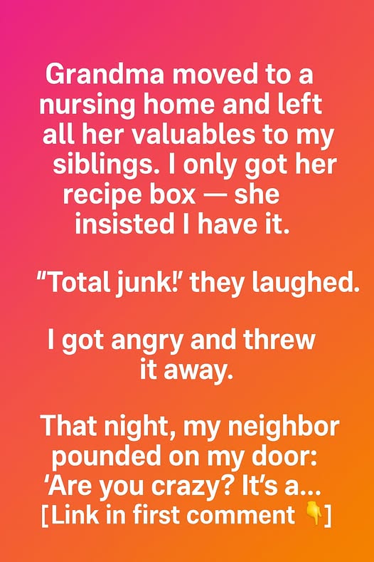 A few hours later, a loud knock rattled my door. It was my elderly neighbor—someone who’d known Grandma since childhood. He was holding the discarded box like it was made of gold.