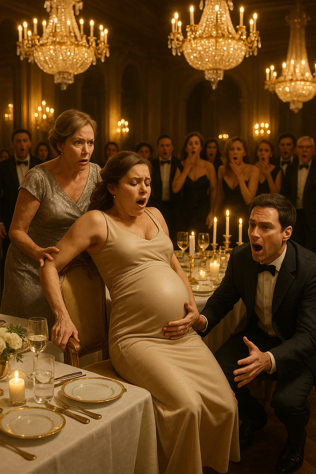 Within minutes, paramedics burst through the doors. The grand dinner was forgotten. Wine spilled, laughter died, and the proud Evans matriarch stood trembling as her pregnant daughter-in-law was carried away on a stretcher.